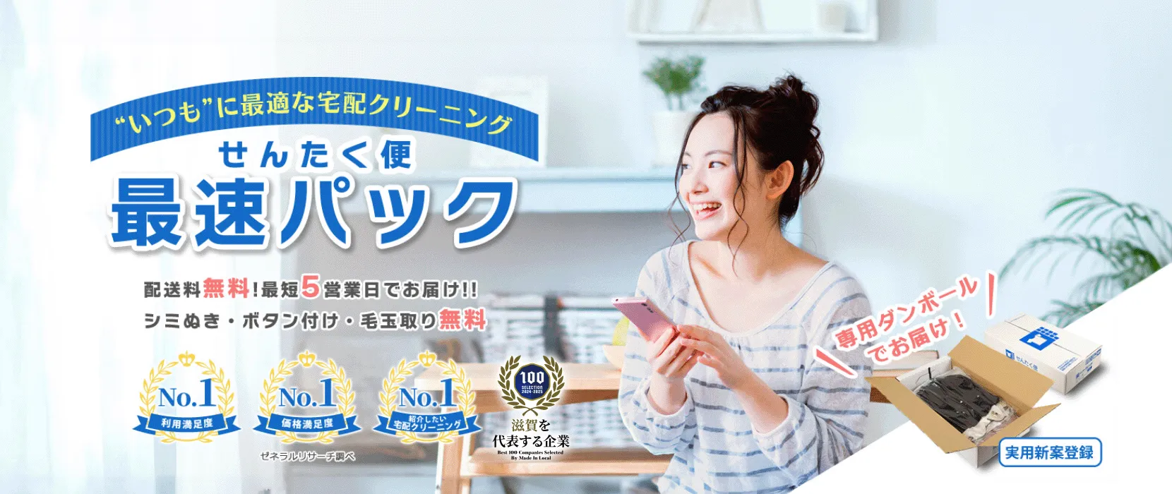 せんたく便最速パックなら、お預かりからお届けまで最短5営業日のスピードクリーニングで対応します!